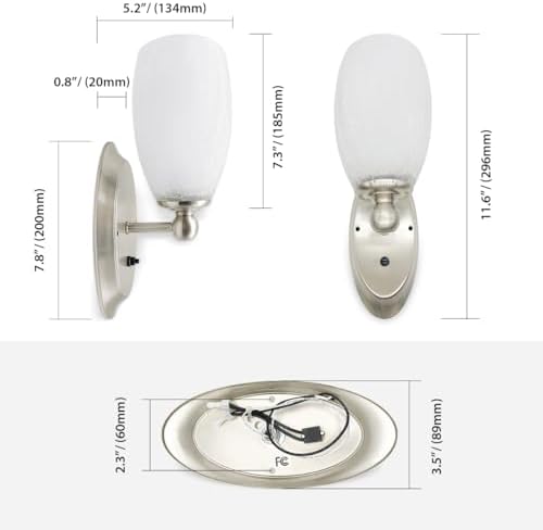 Constructed with a robust brushed nickel base, this sconce ensures long-lasting durability. It comes equipped with an on/off switch, allowing you to control the light effortlessly.