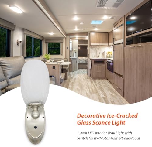 Dream Lighting RV Interior LED Light Fixture – Ice-Cracked Glass Wall Lights for Camper Trailers – Soft White 12 Volt DC
