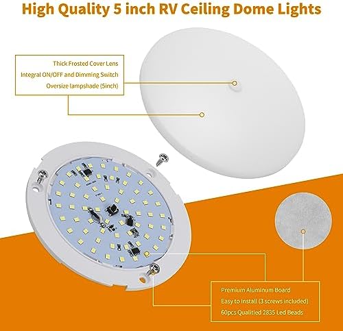 Crafted from A-grade plastic and aluminum, our RV lights ensure durability and performance. The milky frosted lens provides smooth, uniform light without shadows or glare. With excellent heat dissipation, these lights are also shockproof, anti-drop, and wear-resistant.