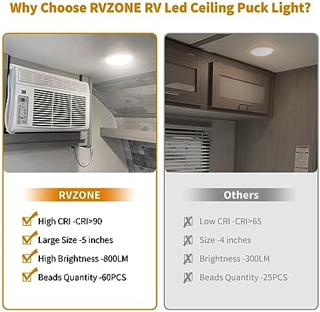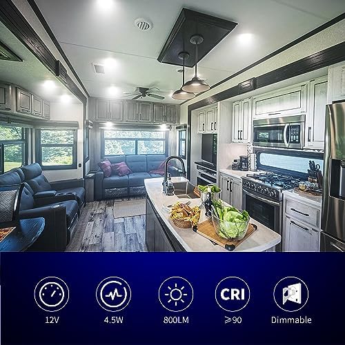 Our RV LED ceiling puck light operates at 12V with a low power consumption of just 4.5W. This efficient design saves energy while delivering an impressive 800 lumens of brightness at a cool 5500-6500K color temperature. With a lifespan exceeding 60,000 hours, it’s a long-lasting lighting solution for your vehicle.