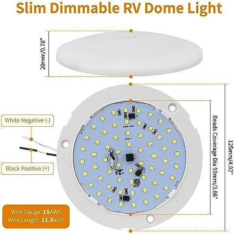 Experience personalized lighting with our RV ceiling light, designed for seamless brightness adjustments. By long-pressing the switch, you can effortlessly set the light from a gentle 10% to a brilliant 100%, ensuring the perfect atmosphere for any situation. Note: To prevent flickering, please refrain from using an external dimmer.
