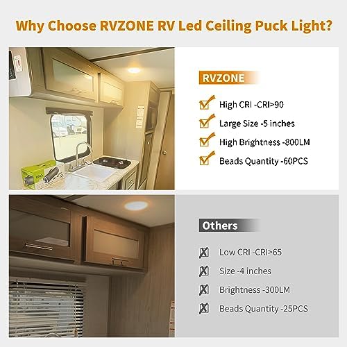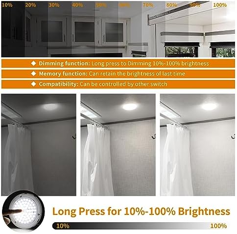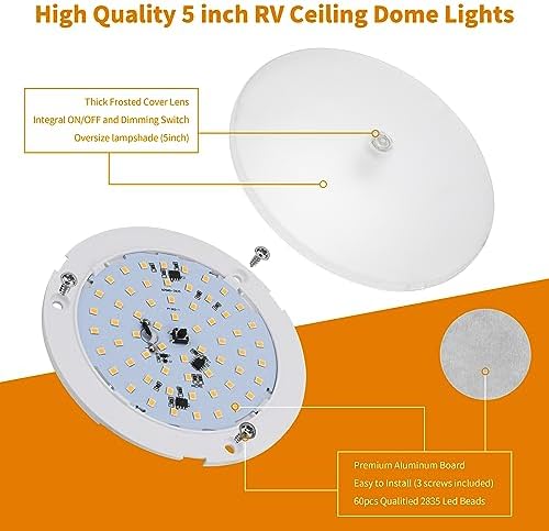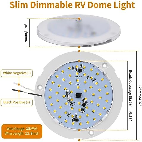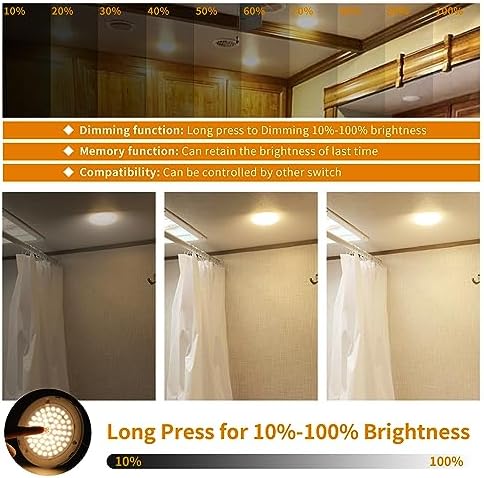 Our RV ceiling light features stepless dimming from 10% to 100%. With a long press on the switch, you can effortlessly adjust the brightness to your desired level. Enjoy complete control over your space’s ambiance. Note: To prevent flickering, refrain from using an external dimmer.