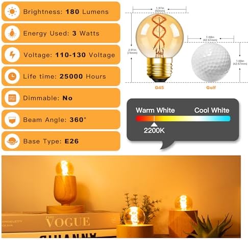 Measuring just 1.97 inches by 2.91 inches, these vintage-style bulbs feature a medium screw base that easily fits E26 standard lamp sockets. Their compact size makes them perfect for a variety of lighting needs without compromising on style or efficiency.